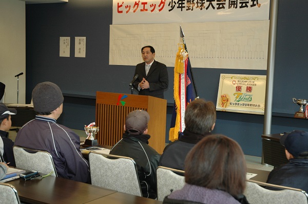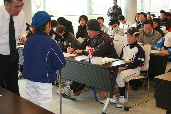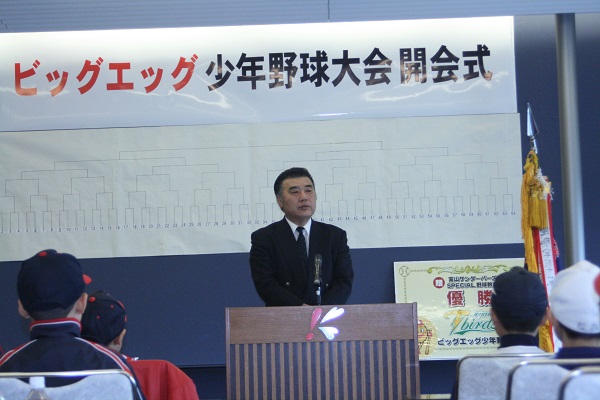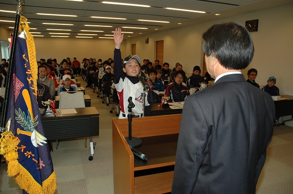 選手宣誓 水橋少年野球クラブ 岩田 尭大主将 手前は針山常喜大会長