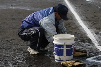 氷が張った水溜りに手を入れて吸い取って貰っていますm(_ _)m