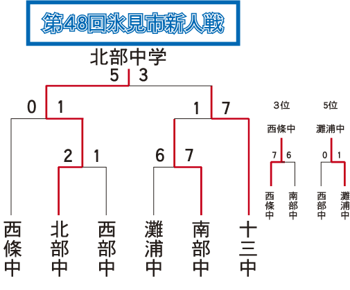 | 北部中 | 1 | 0 | 0 | 0 | 0 | 1 | × | 2 |