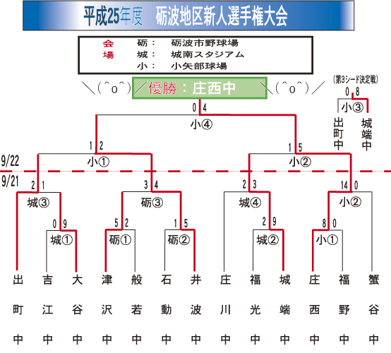 | ■平成25年度秋季下新川郡大会 | 10/14 | 朝日 | 入善西 |