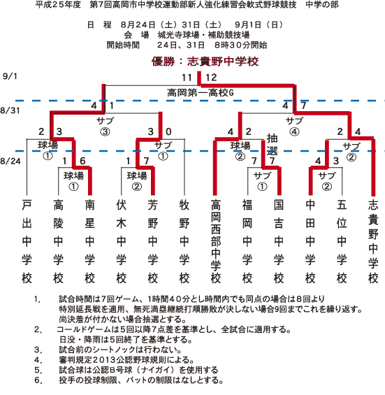 | ※ 志貴野、南星、高岡西部、芳野が高岡地区新人大会のシード権を獲得 | ||||||||||