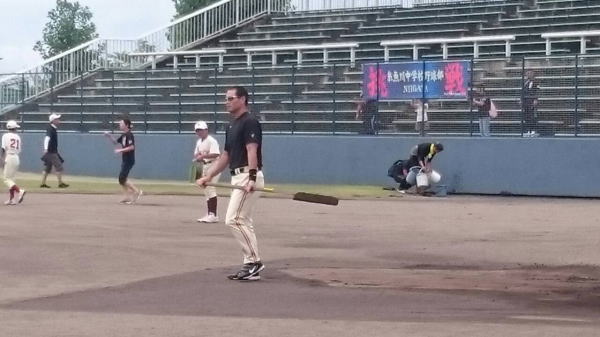 | 今日(8/14)は朝方のどしゃ降りで試合開催が危ぶまれましたが 桑田真澄さん自らグラウンドレーキを持って整備・・・(凄い) 大会関係者全員の団結で大会が無事開催され、終了する事ができました。 |