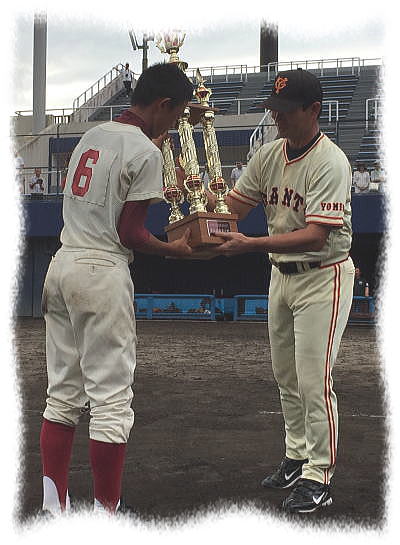優勝した上市中学に桑田真澄氏本人からカップ・トロフィー等が贈られました\(^o^)/