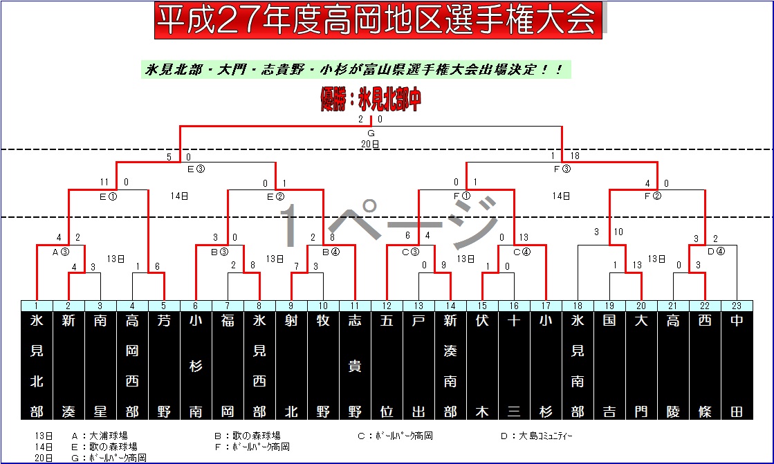 | 氷見北部 | 1 | 0 | 0 | 2 | 1 | 1 | 0 | 5 |
