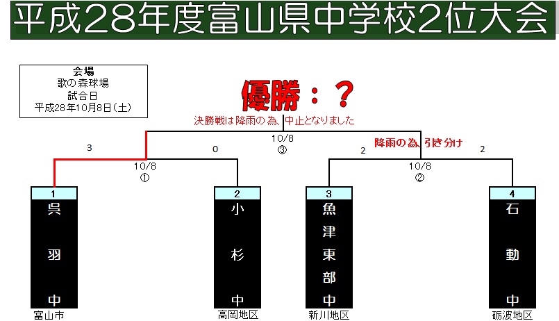 | 魚津東部中 | 0 | 0 | 0 | 0 | 0 | 0 | 2 | 2 |