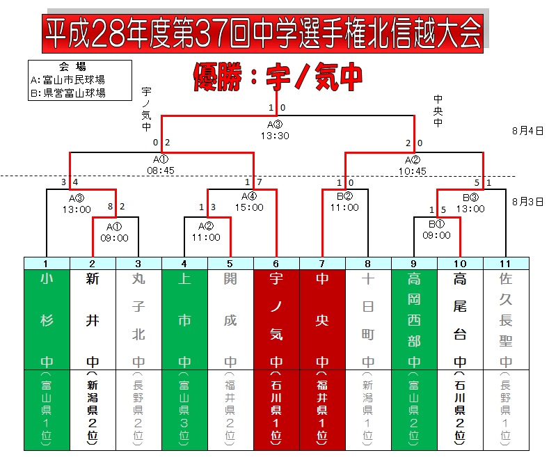 | 中央中(福井県) | 宇ノ気中(石川県) | |||||||
