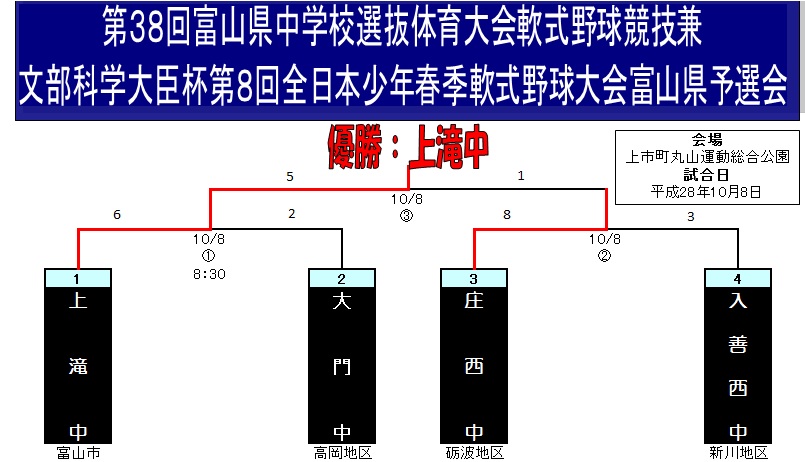 | ※降雨の影響で第2試合(庄西-入善西戦)の進行が大幅 | ||||||||