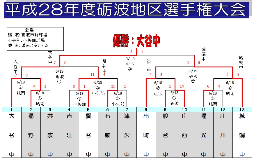 | 大谷中 | 1 | 2 | 4 | 0 | x | 7 | ||