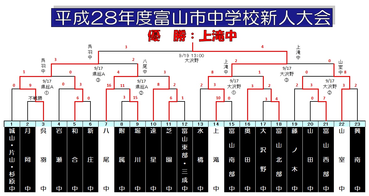 | 月岡中 | 月岡中 棄権のため、呉羽中の勝利 | |||||||||