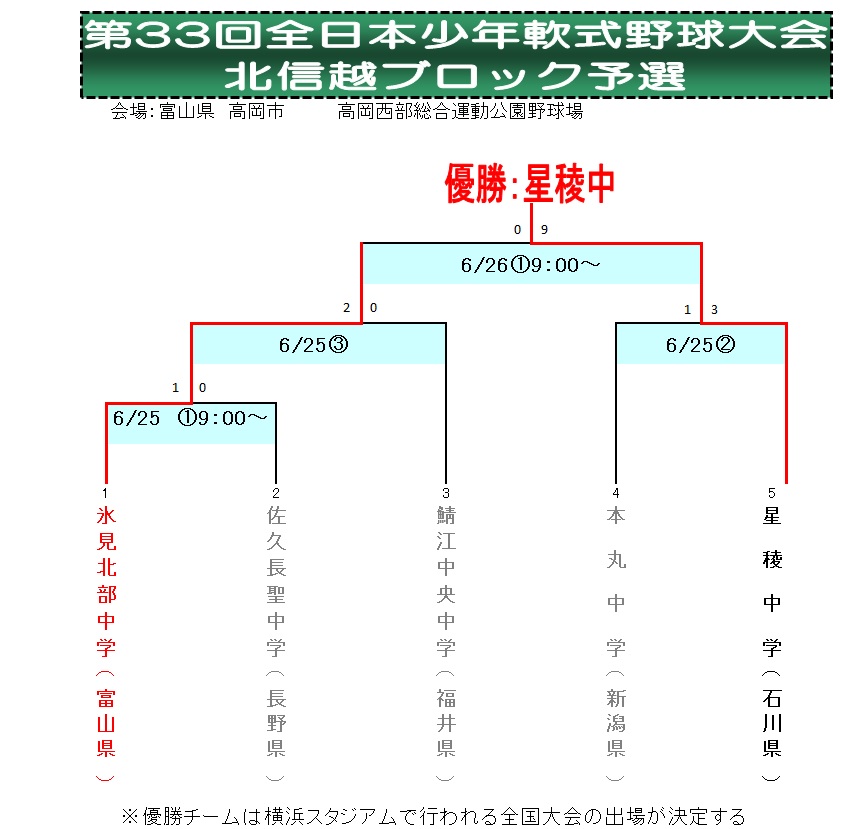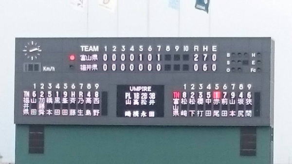 | ◆6月26日 | ◆高岡市西部総合公園野球場 | ◆開始9時10分 | ||||||||||||