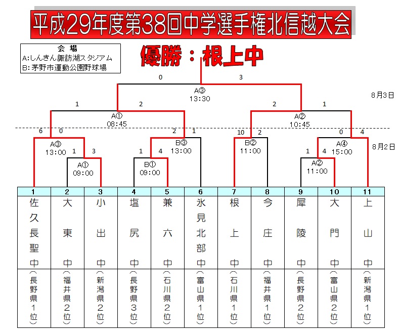 | ※根上は3年ぶり2度目の全国中学選手権出場 (石川県勢は2年連続17度目) |