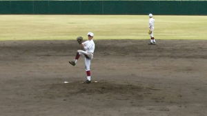 | 先発で好投する田中投手(氷見北部)。 |
