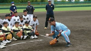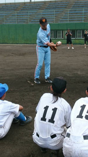 ![]() 各チームの投手たちにピッチングのコツを 伝授していただきました。 |
