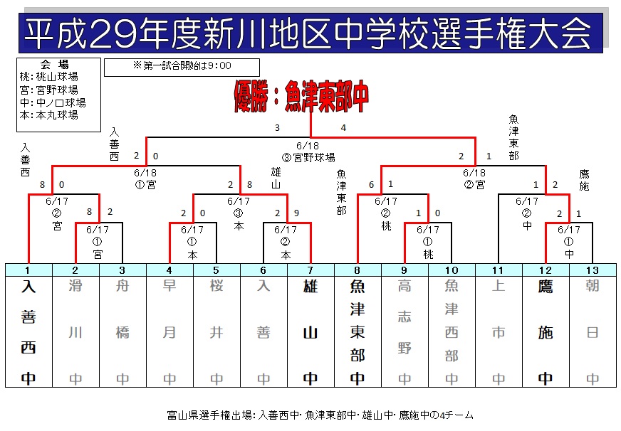 | ※入善西は7年ぶりの県選手権大会出場。 | ||||||||||