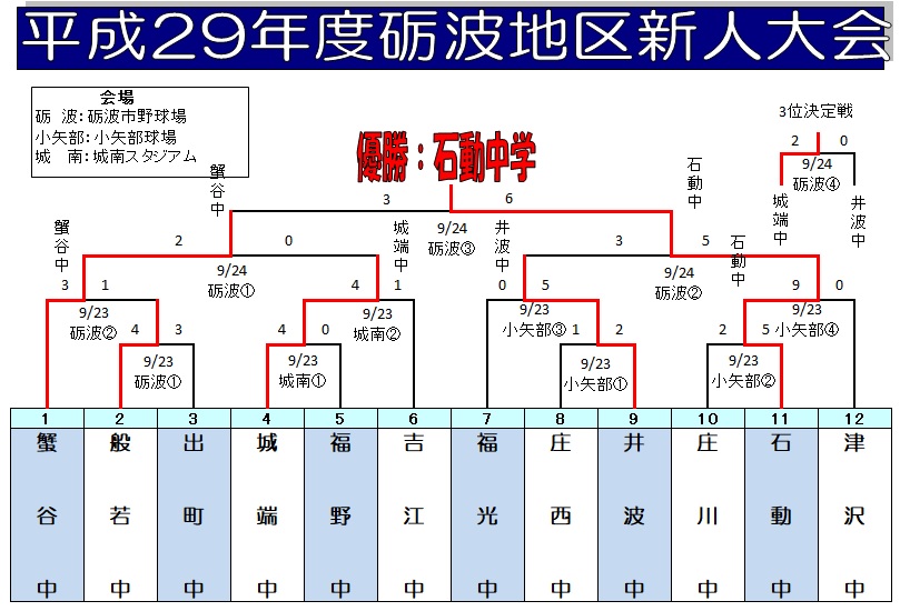 | 井波中 | 0 | 0 | 2 | 0 | 0 | 0 | × | 2 |