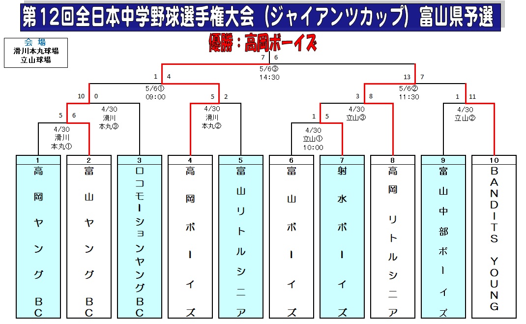 | チーム名 | 高岡ボーイズ | 富山リトルシニア | ||||||||||||