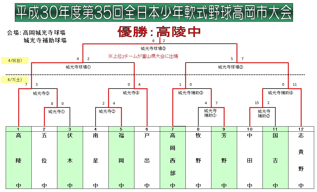 | 戸出 | 0 | 0 | 0 | 0 | 0 | 4 | × | 4 | |
