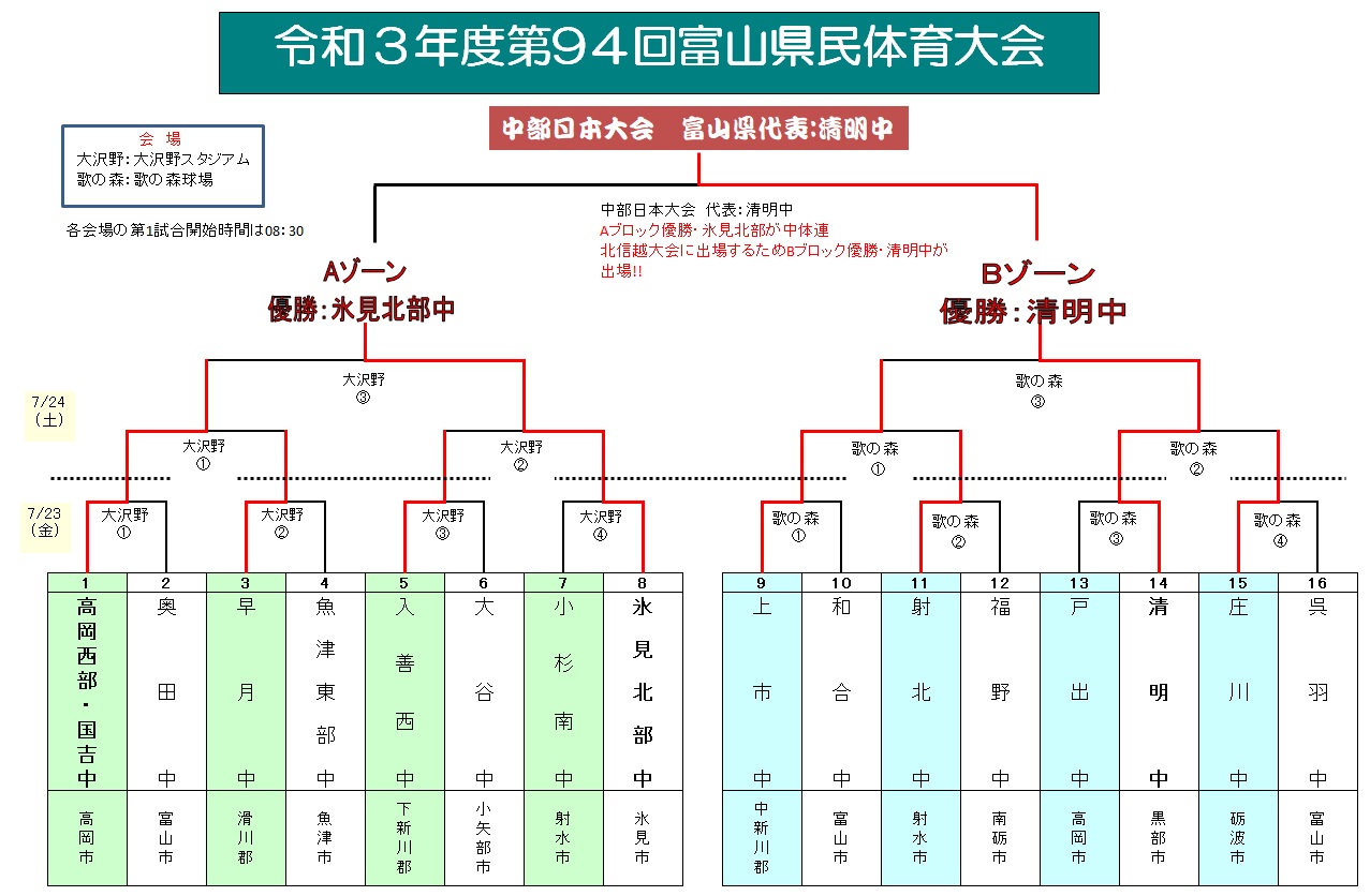 | Aブロック優勝・氷見北部が中体連北信越大会に出場するためBブロック優勝・清明が県 | |||||||||||||||||||||||