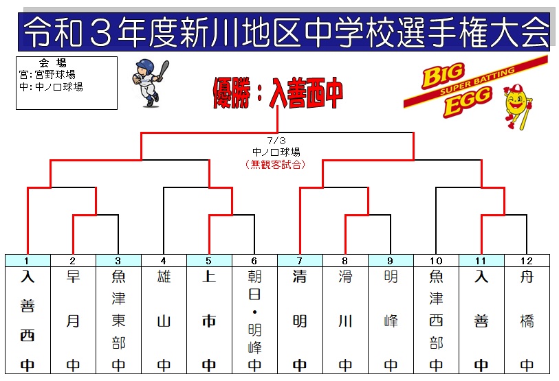 令和3年度新川地区選手権は6月12、13日、7月3日の3日間行われ