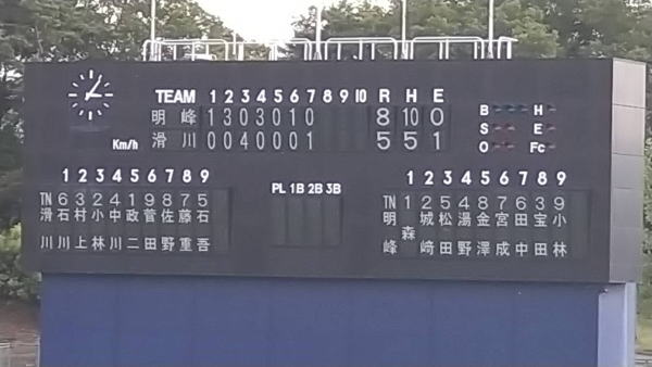 | 投 手 | 萩中、青山 | 酒井秀、石黒 | ||||||||||||||||||