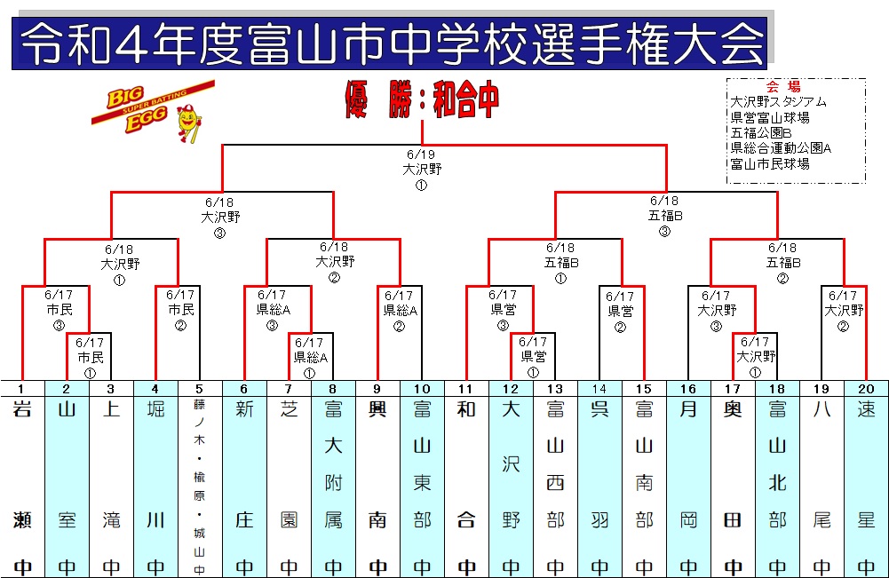 ※和合中・岩瀬中・興南中・奥田中の4校が富山市代表で県大会に出場!!