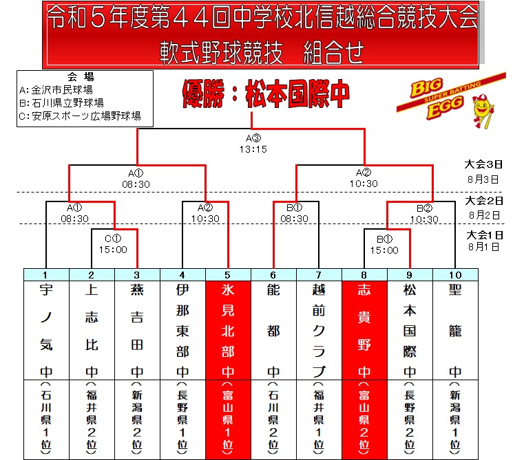 | ◆決 勝 | 【延長8回タイブレーク】 ※松本国際は初優勝(長野県勢は20年ぶり4度目) | |||||||||||||