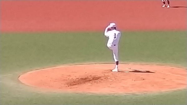 | 先発した二口投手。 | 2安打3打点の林外野手。 |