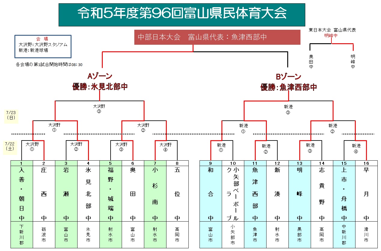 | Aブロック優勝・氷見北部が中体連北信越大会に出場するためBブロック優勝・魚津西部 | |||||||||||||||||||||||