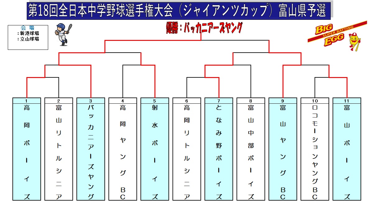 | チーム名 | 高岡ボーイズ | バッカニアーズヤング | ||||||||||||