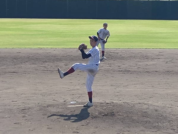 | 救援登板で好投した松原投手(清明)。 |