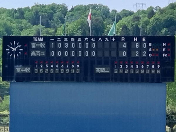 | 富山中学軟式ク | 4 | = | 1 | 0 | 3 | 0 | 0 | 0 | 0 | ||||