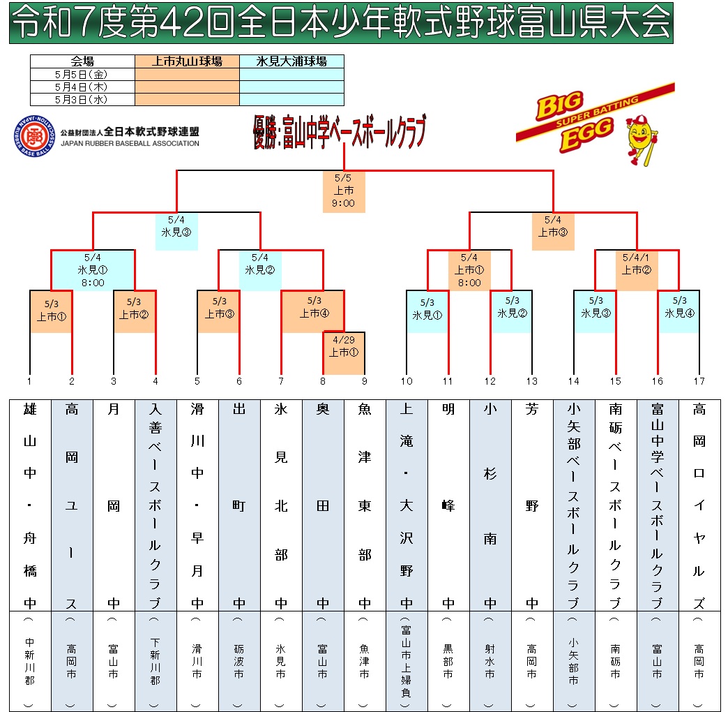 | ◆決 勝 | ※富山中学軟式クラブは初の北信越大会出場 | ||||||||||||